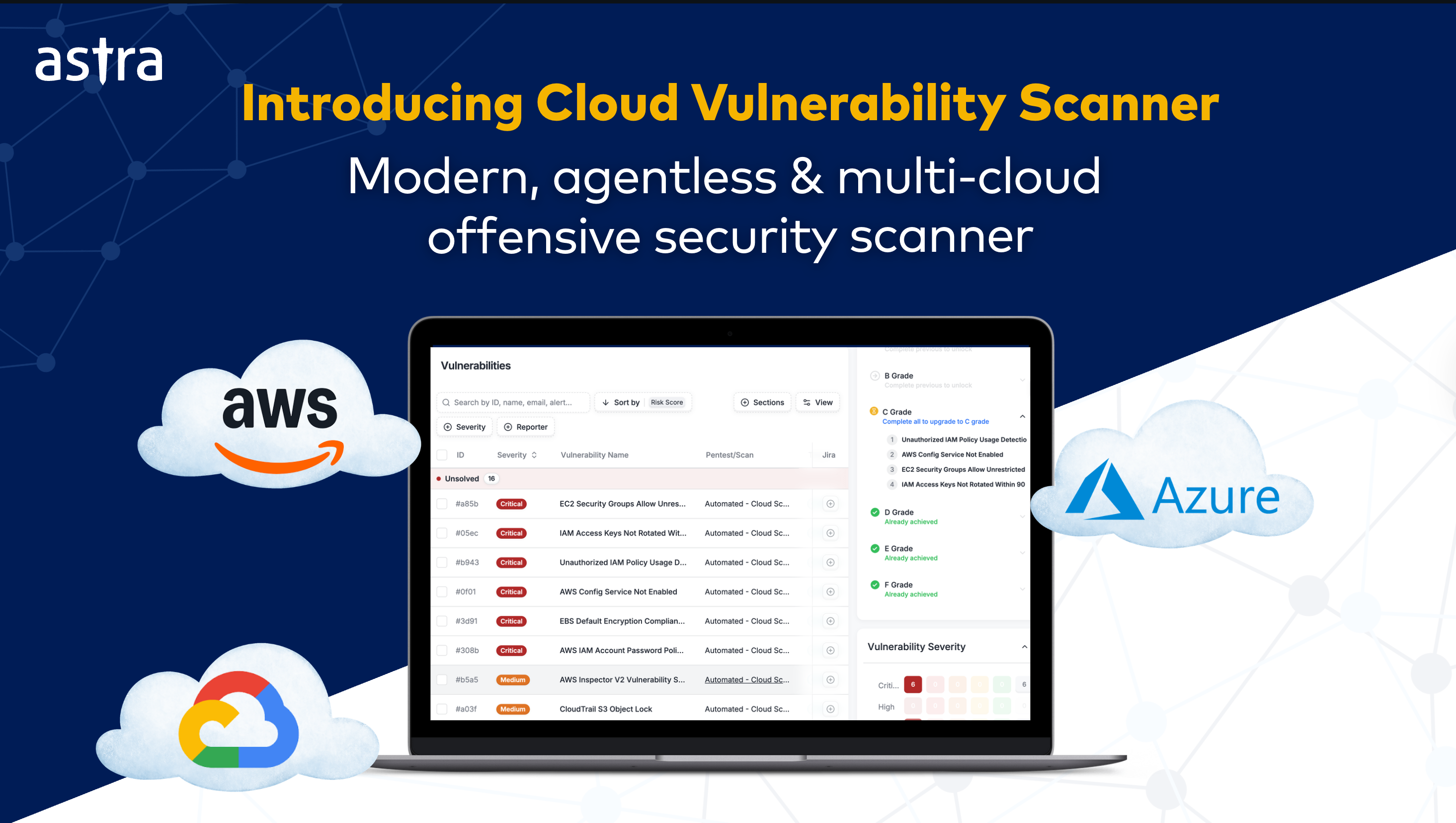 We’re excited to announce the launch of Astra Cloud Vulnerability Scanner, designed to help teams continuously detect misconfigurations, IAM risks, and compliance gaps across AWS, Azure, and GCP.